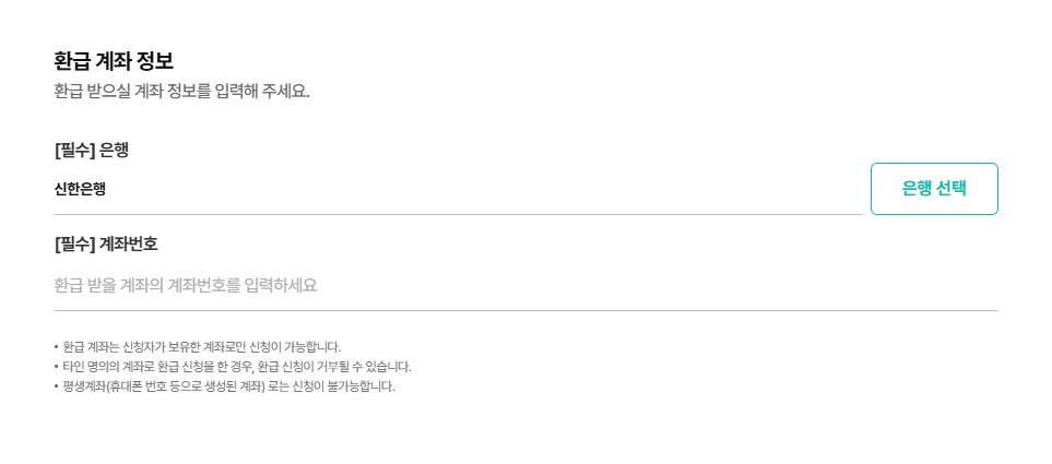 계좌번호, 은행명 등은 정확히 입력해야 하며,